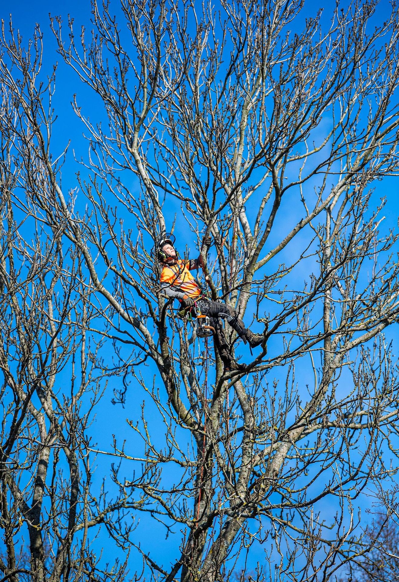 Säkerhetsbeskärning innebär att man avlägsnar de döda grenar som är potentiellt farliga för personer eller byggnader. En arborists klättertekniker gör att det går att nå alla grenar.